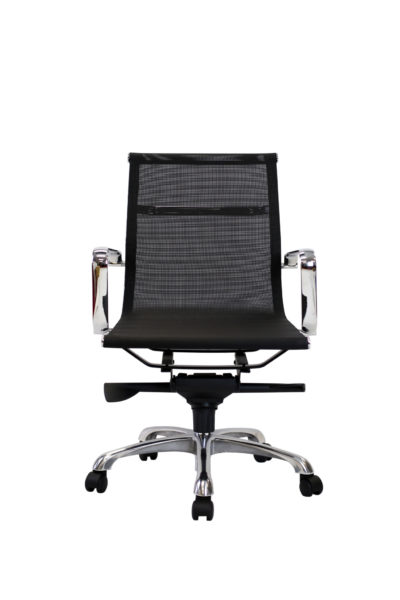 Mid back managers’ mesh chair with central tilting mechanism, tilting tension adjustable and lockable, reinforced nylon casters and chrome base.